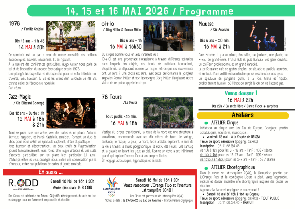 En 2026, le festival Plantez-là célèbre dix années d’existence. Cet anniversaire marque une étape importante dans l’histoire du projet, confirmant la pertinence d’une action culturelle ambitieuse en milieu rural et la capacité du festival à inscrire durablement le cirque contemporain dans le paysage culturel du Lot.